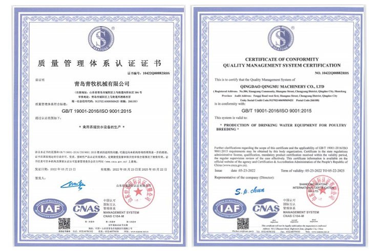 青島青牧機械有限公司成立于2013年,是一家集研發、生產、銷售、服務于一體的綜合性企業。公司專注于家禽飲水設備的研發和生產,擁有專業的研發團隊、先進的加工設備以及自動化組裝線,力求打造“簡單、高效、環?!钡母叨饲萦蔑嬎到y。